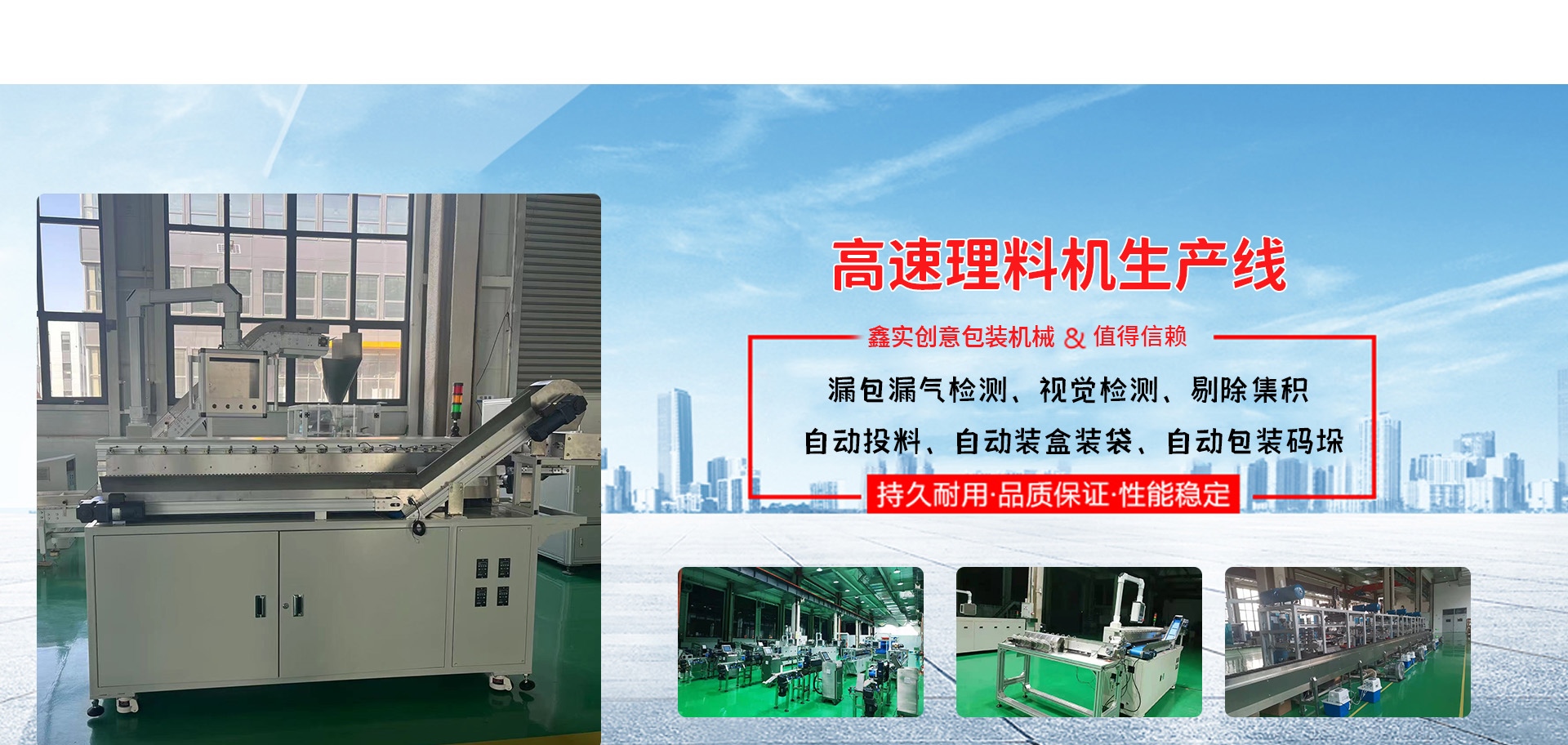 自主研發(fā)產(chǎn)品有食品行業(yè):食品包裝機、散包高速理料機、食品高速理料生產(chǎn)線、全自動管材包裝生產(chǎn)線、管材包裝設(shè)備、自動折盒機、高速裝盒機、高速投包機、高速散包自動上料機、高速包裝機移動式端封、立式枕式自動接膜機、包裝設(shè)備自動糾偏儀、打孔器、真空自動上料機、視覺檢測等多種自動化設(shè);建材行業(yè):直管包裝生產(chǎn)線、蓋帽機、飛行檢測儀等;公司業(yè)務(wù)范圍涵蓋建材、食品、醫(yī)療多個行業(yè),客戶遍及上海、天津、浙江、江蘇、山東、河南、四川、廣西等地。